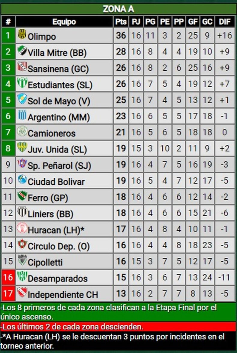 Complicado y otra vez en descenso. Desamparados volvió a caer en zona roja luego de que un choque pendiente lo empujara a los puestos de abajo. Pese a que Dillon consiguió equilibrar un poco el barco, no pudo hacer nada ante la victoria de Huracán Las Heras sobre Sol de Mayo en un duelo que adeudaban del Federal A. Ante este panorama, el Víbora saldrá a disputar una nueva fecha. En el caso de Peñarol, un poco más relajado y con un objetivo, quiere recuperarse de la caída pasada y querrá sumar para entrar en clasificación.