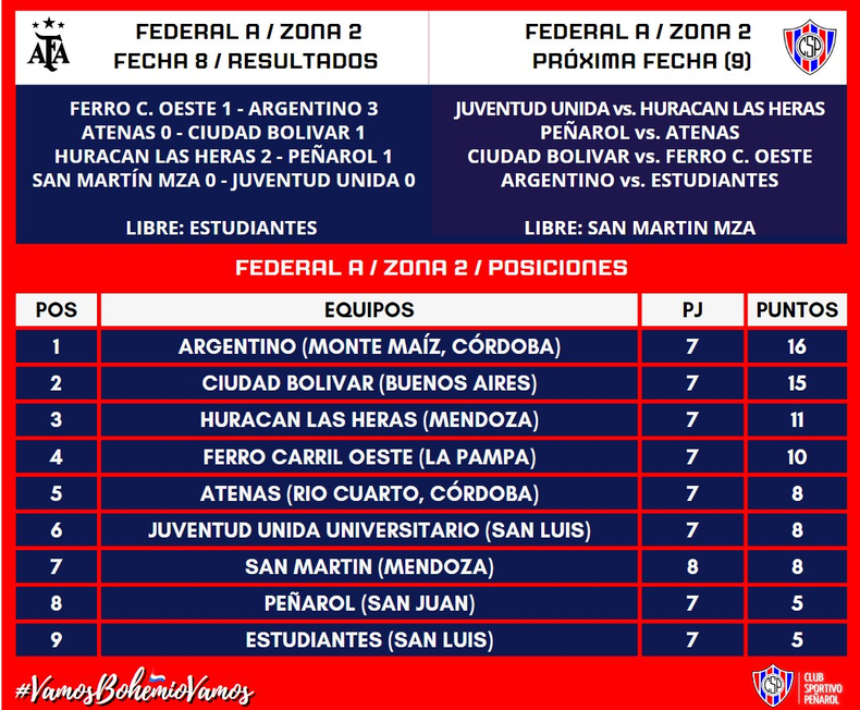 Peñarol viene tambaleando en el Federal A. Todavía no se puede acomodar y sufre en el partido a partido. En lo que va del campeonato solo pudo ganar una sola vez y eso le pesa. Está penúltimo en la tabla de posiciones de la Zona B y está obligado a conseguir un buen resultado este fin de semana para empezar a despegar. Juega este sábado a las 16hs en su cancha de Chimbas.
