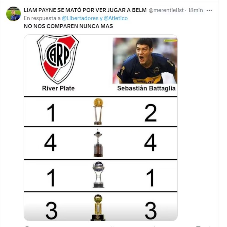 River no pasó del empate ante Atlético Mineiro, que había ganado 3-0 en la ida, y quedó eliminado en las semifinales de la Copa Libertadores de América. En las redes sociales, los fanáticos del Millonario manifestaron su entusiasmo, nerviosismo y desazón, antes, durante y posterior al encuentro. Por supuesto, no faltaron las burlas para Marcelo Gallardo, que no pudo clasificar a su equipo a la final e ir en busca de la quinta Copa Libertadores de la historia del club. Los simpatizantes de Boca inundaron X (antes Twitter), con los clásicos memes, y hasta Atlético Mineiro se burló con un posteo en su cuenta oficial.
