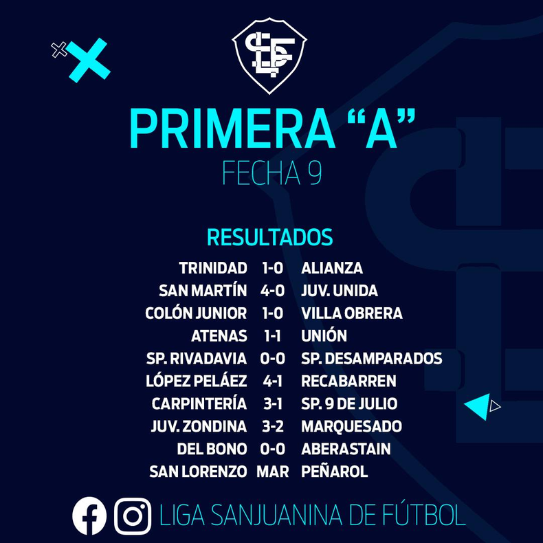 Después de un fin de semana de mucho fútbol, este martes se baja la persiana de la fecha 9 con el partido entre San Lorenzo de Ullum y Peñarol. El choque se disputará en la Villa Aurora. La Cuarta jugará a las 14hs y la Primera a las 16hs.