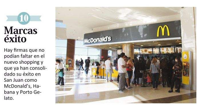 2-Terraza con panorámica 3-Ascensor vidriado 4-Juegos exclusivos 5-Escaleras mecánicas 6-Café en la pecera 7-Nuevas Marcas 8-Patio de festejos 9-Lo que se viene 10-Marcas éxito