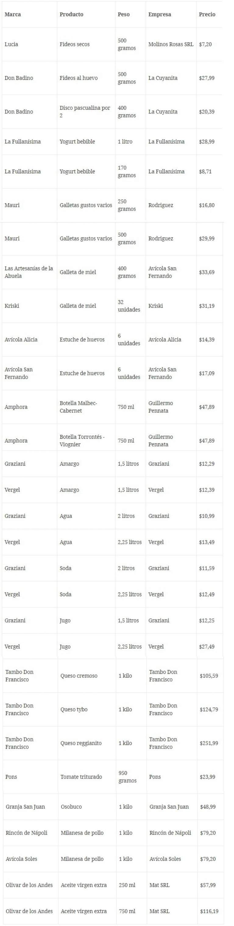 A continuación se detalla el listado de productos que están comprendidos en este programa: