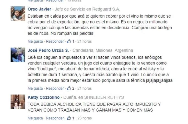 En medio de la polémica por el impuesto al vino que propone el Gobierno Nacional, llamó la atención la diferencia en los comentarios entre los medios cuyanos y los nacionales. Las opiniones de los que ingresan en los diarios pueden servir de termómetro, mirá qué dijeron algunos de los comentaristas en Clarín, La Nación y TN: