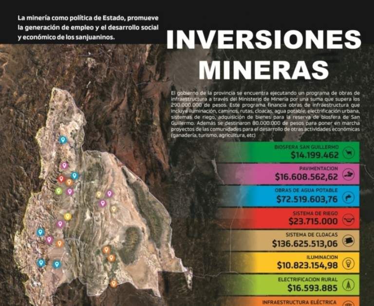 Con unos $290 millones, (unos US$ 17 millones al cambio actual) de fondos mineros, el Ministerio de Minería de la Provincia informó las áreas en las que se invirtieron y se invierten estos fondos en San Juan.