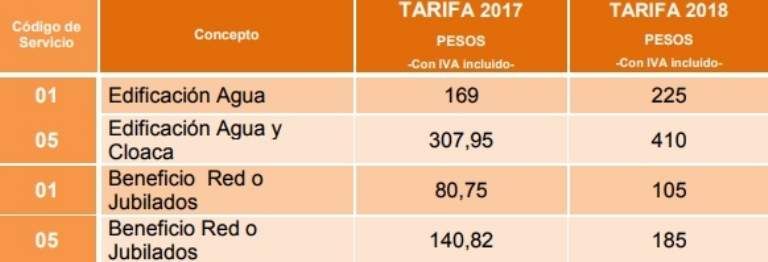 Además, la empresa estatal contempla situaciones de grupos sociales con entornos vulnerables y también de jubilados con haberes mínimos. Para ello existe un código diferenciado 01 (Beneficiario Red y cloaca jubilados), quienes pagarán por servicio de agua $105, antes pagaban $80,75. En tanto, por el servicio de agua y cloaca pagarán $ 185 y antes pagaban $140,62.