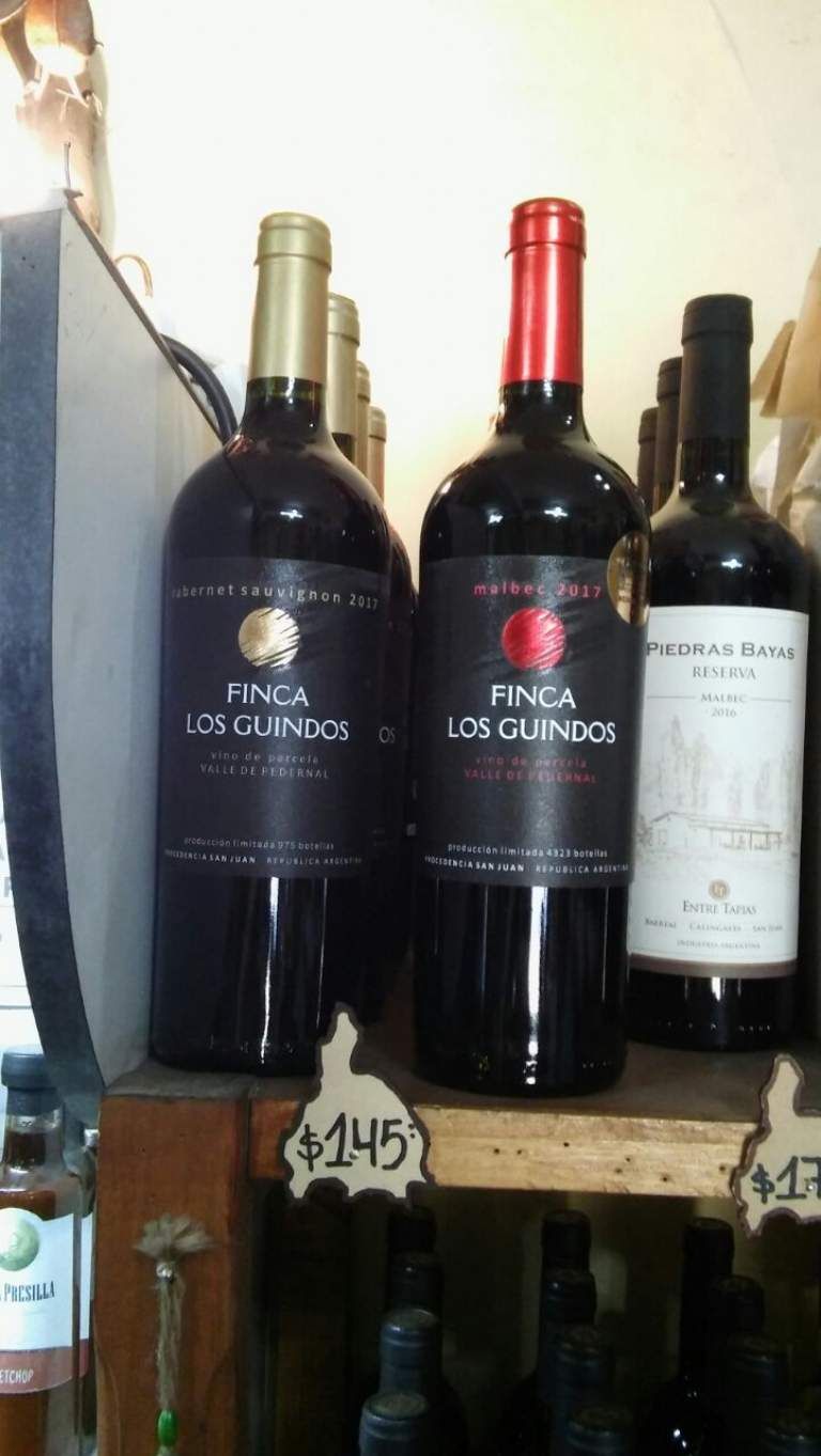 Otros vinos con uvas de Pedernal (la zona top de San Juan) es Finca los Guindos, Cabernet y Malbec de excelente calidad a sólo $145.