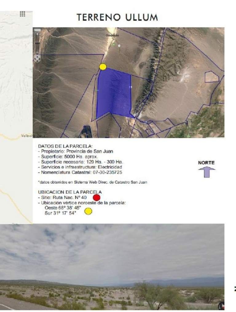 Los pliegos destacan que es una zona desértica, con lo cual no afecta ninguna otra actividad. Además, se trata de un terreno ripioso sin posibilidad de cultivo intensivo, con una topografía particular al estar ubicado en una zona de piedemonte con pendientes.