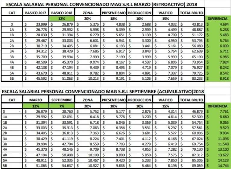Mirá la tabla de nueva escala salarial conformada para el personal bajo convenio de la empresa MAG S.R.L: