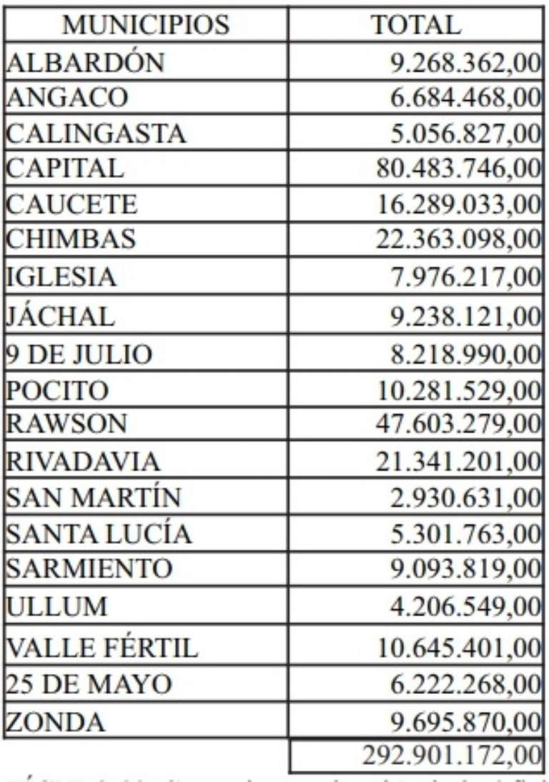 Con ese esquema, Capital y Rawson siguen siendo los municipios que más dinero reciben, aunque muy lejos uno de otro.