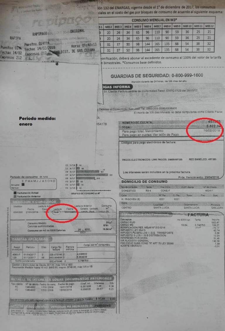 Que los habitantes de la Provincia de San Juan, considerada zona fría, padecemos bajísimas temperaturas -0°, en época otoño/invierno, sumado al hecho de que es el medio mas utilizado para calefaccionarse, factores que conllevan a que se haga un uso considerablemente mayor del gas, que inevitablemente llevan a que las facturas sean altas, y debido a los aumentos en la tarifa, es imposible pagarlas.