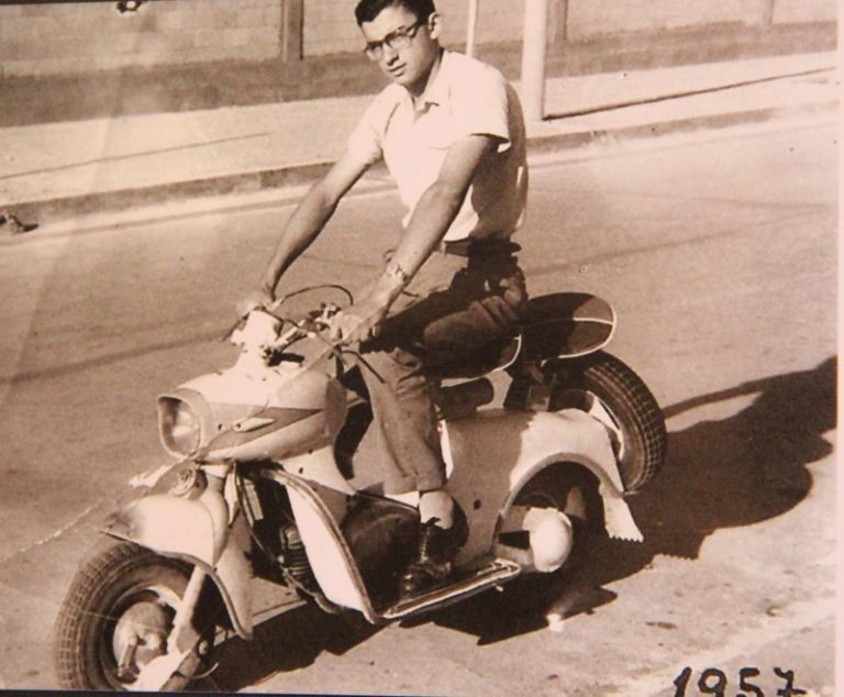 Mario en una de las primeras motos que ingresó a la provincia.