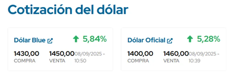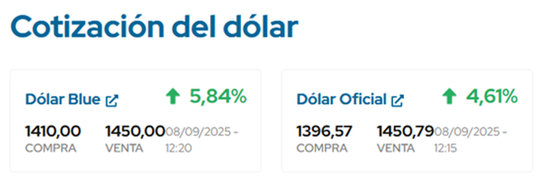 En la jornada de este lunes en Buenos Aires, el dólar blue se negoció a $1.355 para la compra y $1.385 para la venta, mientras que el oficial cerró en $1.365 y $1.425 respectivamente. En el segmento financiero, el MEP se ubicó en $1.432,80 para la compra y $1.436,50 para la venta, y el contado con liquidación en $1.436 y $1.439. En tanto, el dólar cripto se ofreció a $1.416,17 para la compra y $1.423,75 para la venta, y el dólar tarjeta se posicionó en $1.852,50.