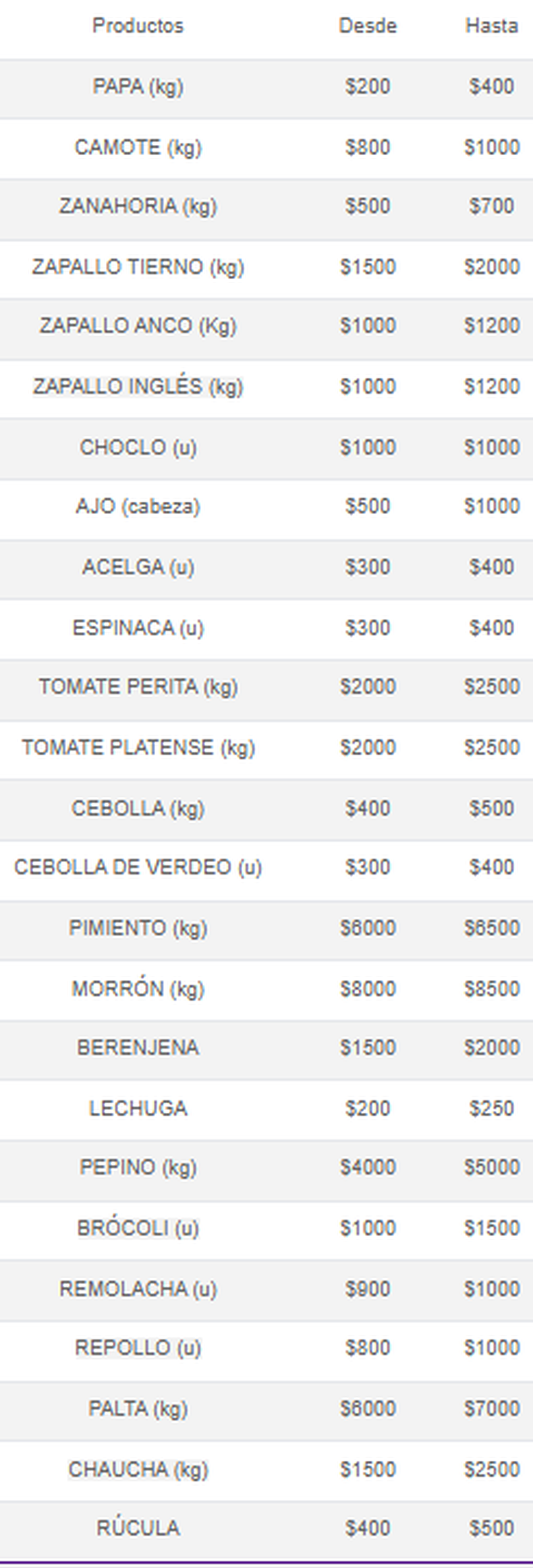 El último miércoles, la Municipalidad de la Capital informó la actualización de las listas de precios de verduras, frutas y carnes en la feria departamental. En total, once verduras y dos frutas presentaron descuentos, en comparación con la semana pasada. No hubo incrementos.