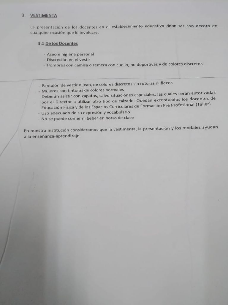 "Qué les parece las "normativas" inventadas por la escuela Epet 4 de una escuela pública de San Juan, Argentina? Para el equipo docente. Amaría saber sus opiniones respecto a estos escritos", escribió una sanjuanina en Facebook. De inmediato el posteo generó comentarios de todo tipo y cientos de compartidos.