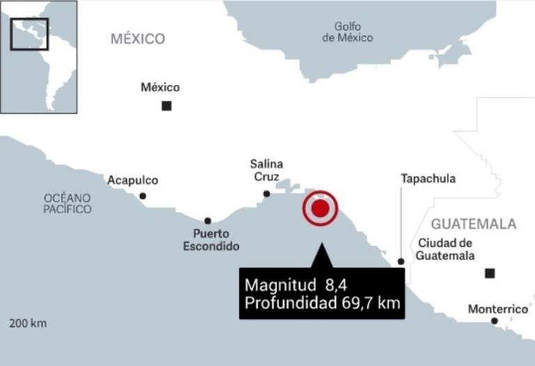 El sismo ocurrió a las 23:49 locales del jueves (01:49 en Argentina) cerca de la localidad de Tonalá (Chiapas), a unos 100 km de la costa, a una profundidad de 19 km y desató una alerta de tsunami para los estados de la porción central y sur de la costa del Pacífico mexicano. Pero ésta fue levantada poco después.