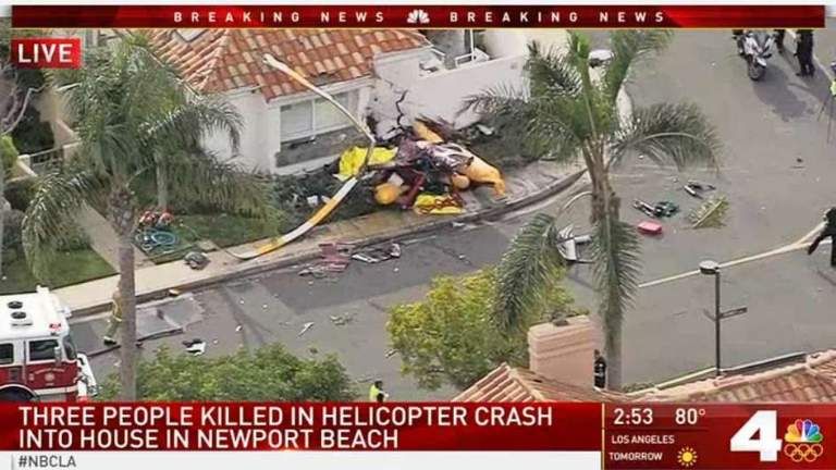 La Policía de Newport Beach emitió un comunicado en el que detalló el accidente a las 13.50 hora loca de un helicóptero que se desplomó sobre un barrio residencial.