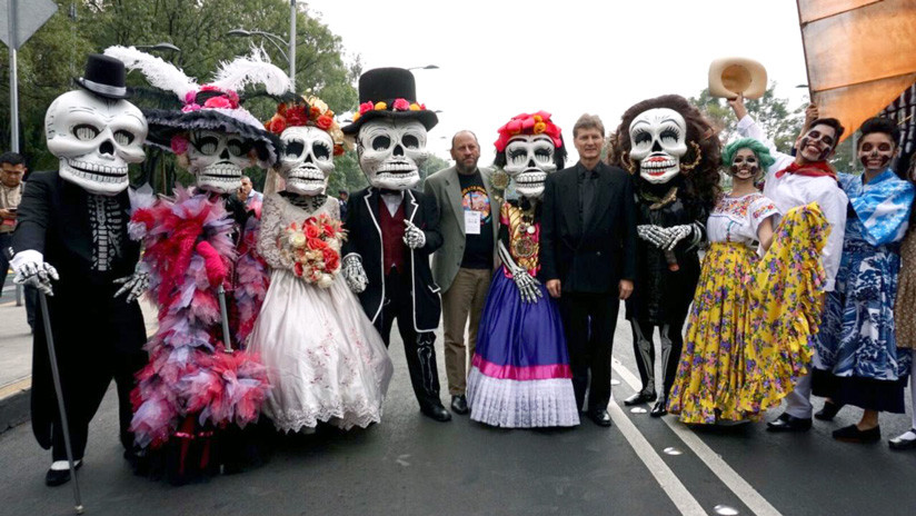 El bullicio es de la dimensión del cielo plomizo que traerá una lluvia inminente que mojará los rostros que este día emulan a la muerte. Un millón y medio de personas celebran el adiós a la vida en un desfile por el Día de Muertos, que se popularizó a nivel mundial, en buena parte, por la películas 'Spectre' de la saga del agente 007, James Bond, en 2015, y 'Coco', ganadora del premio Óscar a la mejor película de animación este año. Kotone, de Japón, por ejemplo, usa a 'Coco' como referente para la fiesta que la hace estar en México.
