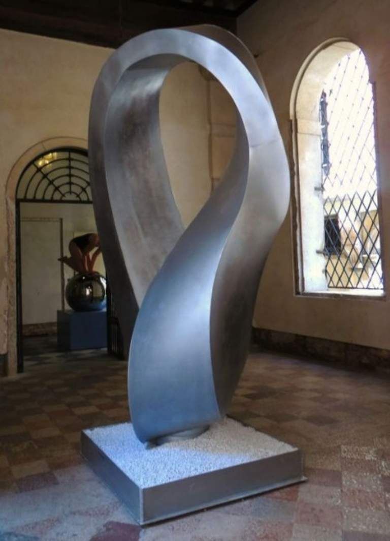 El artista Plamen Yordanov dijo al canal WLS-TV que su escultura, titulada "Light Infinity", fue robada el miércoles mientras él y su esposa se encontraban afuera del edificio haciendo trabajo de jardinería. La obra, realizada en latón y vidrio policromado, tiene la forma de un gran anillo.