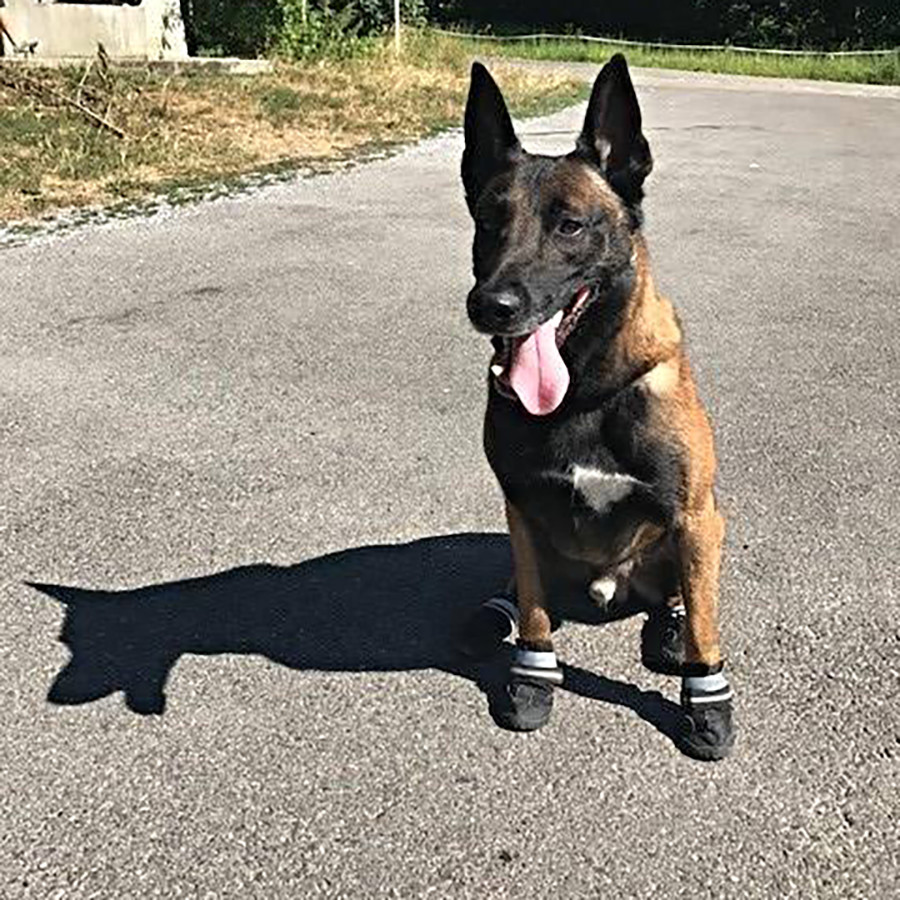 Según la portavoz de la entidad, Michaela Rossmann, citada por la cadena austriaca ORF, el calzado provisto ayuda a proteger de quemaduras a los guardias de cuatro patas, que caminan por el asfalto caliente durante varias horas cada día.