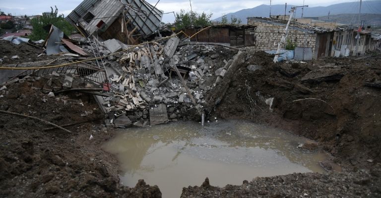 Los proyectiles de las fuerzas de Azerbaiyán han impactado en barrios residenciales, dañando edificios y la infraestructura, incluyendo escuelas y guarderías, de acuerdo con el Centro de Información Unificado de Armenia.