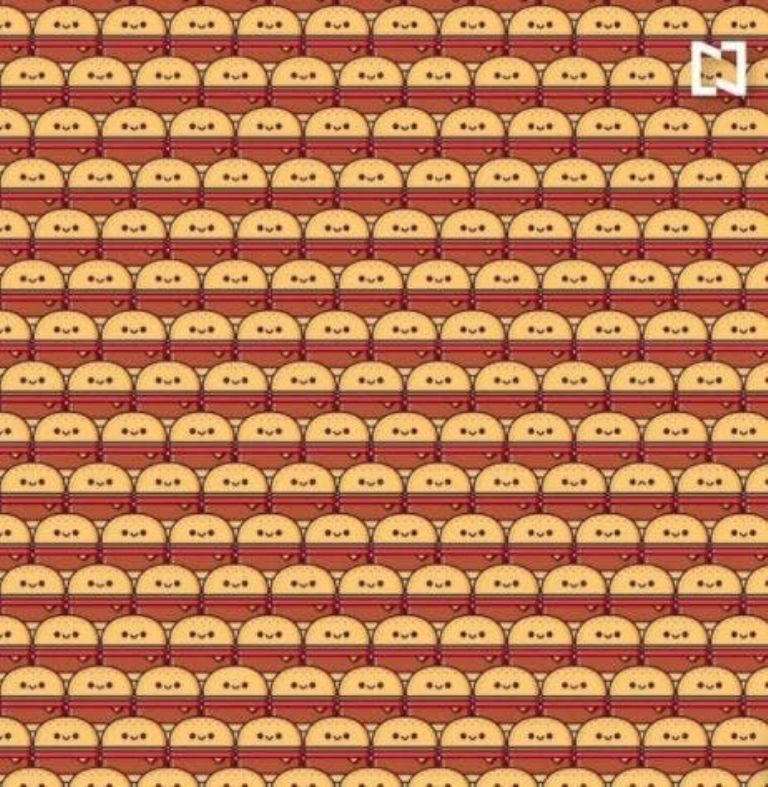 En esta ocasión una imagen repleta de hamburguesas, que a simple vista parecen todas iguales, invita a los aficionados de este tipo de acertijos visuales a poner a prueba sus habilidades.
