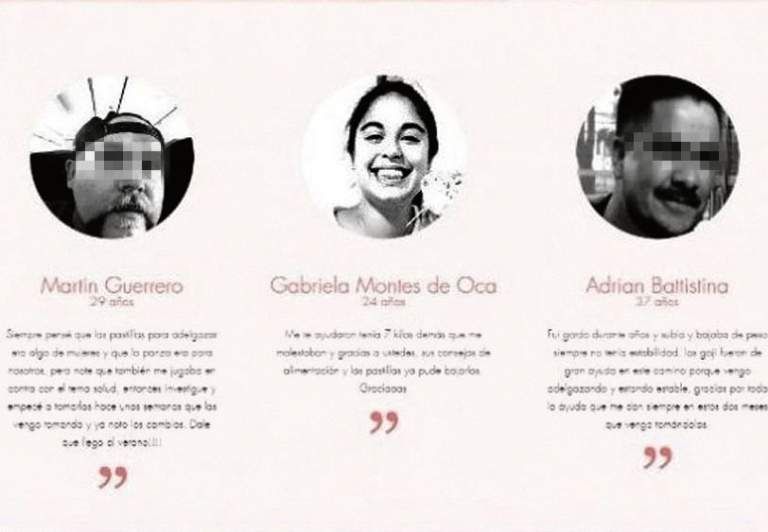 A la foto de la joven la acompañaba un testimonio que decía: "Me re ayudaron: tenía 7 kilos de más que me molestaban y gracias a ustedes, sus consejos de alimentación y las pastillas, ya pude bajarlos. Graciaaas". "A una amiga mía le interesaba el producto, entró a la página, encontró esto y me avisó", contó a NA García, quien confirmó que aún no sabe si iniciará acciones legales contra la firma.