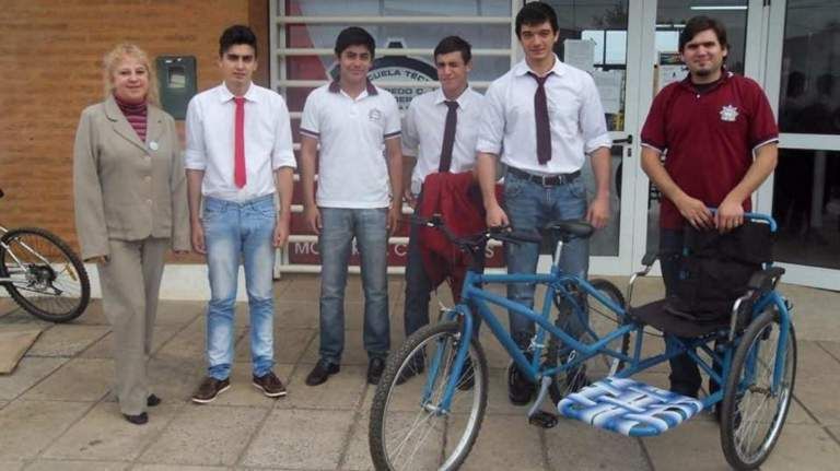 De esta manera, los alumnos de 7° año Rodrigo Aguirre, Lisandro Tisera, Juan Martínez y Franco Rigoni, junto a los docentes Alberto Siviero y Walter Zandona hicieron el proyecto, realidad. Así, Jorge y su familia pueden disfrutar la nueva silla de ruedas unida a una bicicleta.