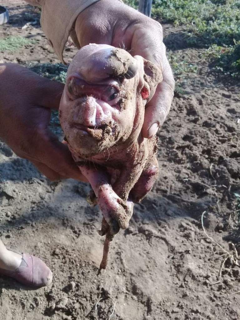 Causó enorme conmoción en la provincia de Santiago del Estero la aparición de un cerdito con rasgos humanoides junto a su madre luego de que pariera a ocho crías.