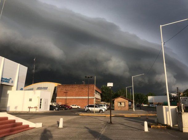 La tormenta se acerca a la Ciudad y ya en Ezeiza las nubes se "devoraron" la terminal aérea.