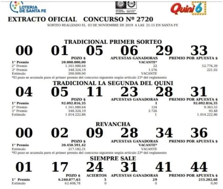 Un afortunado ganó $92.092.816,35 al acertar los 6 números del Quini 6 en su modalidad Segunda al acertar esta combinación de números: 04-05-11-23-28-31. El hombre jugó la boleta ganadora en Avenida Argentina 8, en Neuquén capital. Hace unas semanas se había registrado un ganador en Santiago del Estero, ratificando la buena racha.