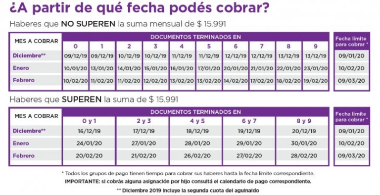 La Anses publicó en su sitio oficial las fecha de pago de las prestaciones correspondientes a diciembre de 2019 y de enero y febrero de 2020. Éstas incluyen jubilaciones y pensiones, asignaciones familiares, Asignación Universal por Hijo (AUH), Asignación por Embarazo, Prenatal y Maternidad, y de Desempleo, entre otras.