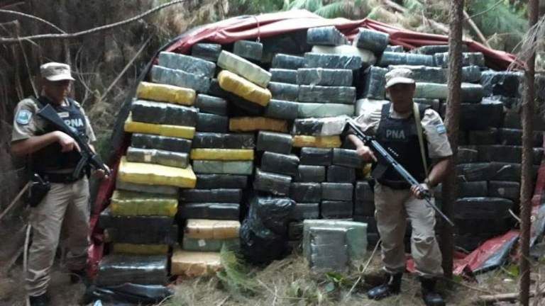 En el camión identificaron a una tercera persona que intentó fugarse, por lo que un prefecto realizó un disparo al aire para asustarlo y finalmente el sospechoso se arrojó al suelo y también fue detenido. En el vehìculo encontraron 9.186 kilos de marihuana fraccionada en 556 bultos, de un valor mayor a los 356.000 millones de pesos.