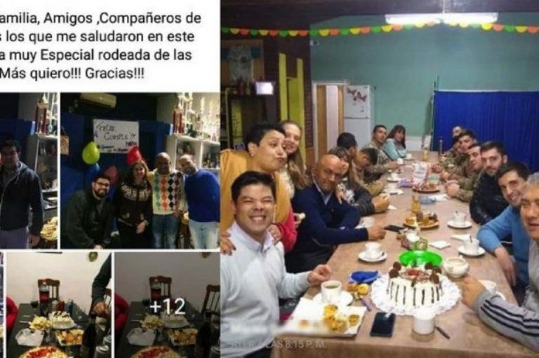 En las fotos que la mujer subió a su Facebook (y que luego borró) quedó en evidencia que se excedía el límite de 10 personas reunidas y que ninguna respetaba el distanciamiento social ni el uso de barbijos.Todos en Alvear, incluso concejales opositores al intendente Walther Marcolini, se enteraron de lo ocurrido y elevaron formalmente una queja.