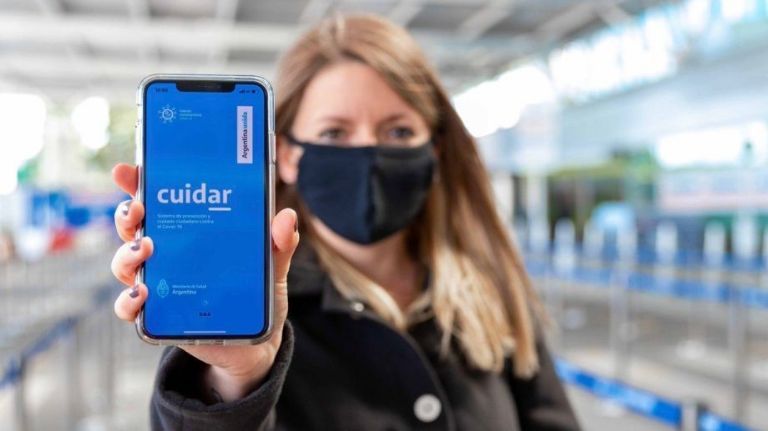La app Cuidar guía por un autodiagnóstico de síntomas, brinda asistencia y recomendaciones sobre la enfermedad. Las autoridades sanitarias dijeron que el pase “forma parte de una estrategia más de cuidado sanitario”.