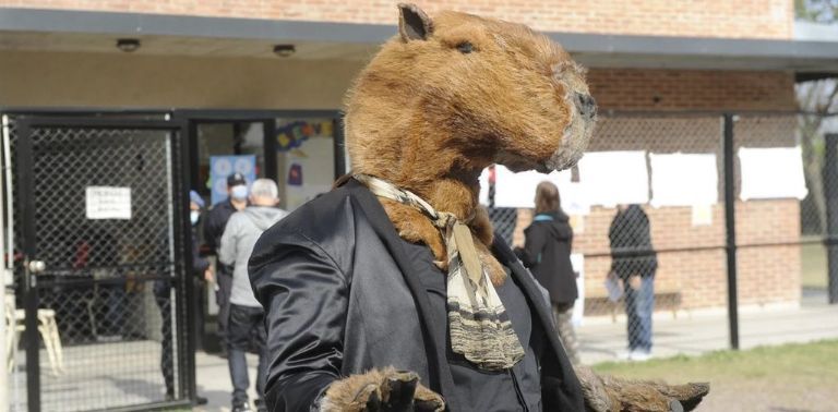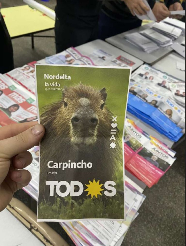 Un carpincho fue a Nordelta: tras la polémica que se armó hace un mes cuando los vecinos querían sacar a los carpinchos de Nordelta. Un vecino fue vestido a votar como carpincho en Nordelta.