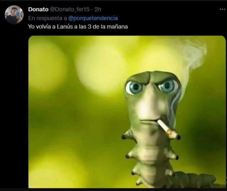 “Sí, soy de Lanús. Yo volvía a la noche, a eso de las 3 de la mañana, a mi casa. Tenía que caminar cuatro cuadras, y eso sí daba miedo todos los días”, retrucó. Estas respuestas provocaron que muchos internautas reaccionaran rápidamente con los clásicos mees en Twitter, mirá.