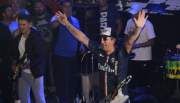 Además, bailó un de sus canciones con un copón de cerveza en la cabeza y descorchó dos champagne en pleno escenario.