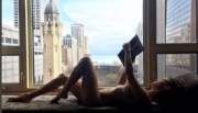 Joanna Krupa, que ha sido portada de Playboy y de otras revistas masculinas, grabó el vídeo junto a la ventana de su habitación del hotel Park Hyatt, de Chicago, leyendo la revista ‘Michigan Avenue’.