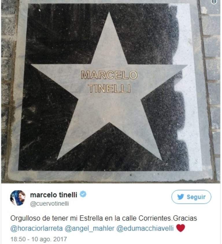 “Orgulloso de tener mi Estrella en la calle Corrientes. Gracias @horaciorlarreta @angel_mahler @edumacchiavelli”, escribió Marcelo junto a la imagen que muestra la estrella.