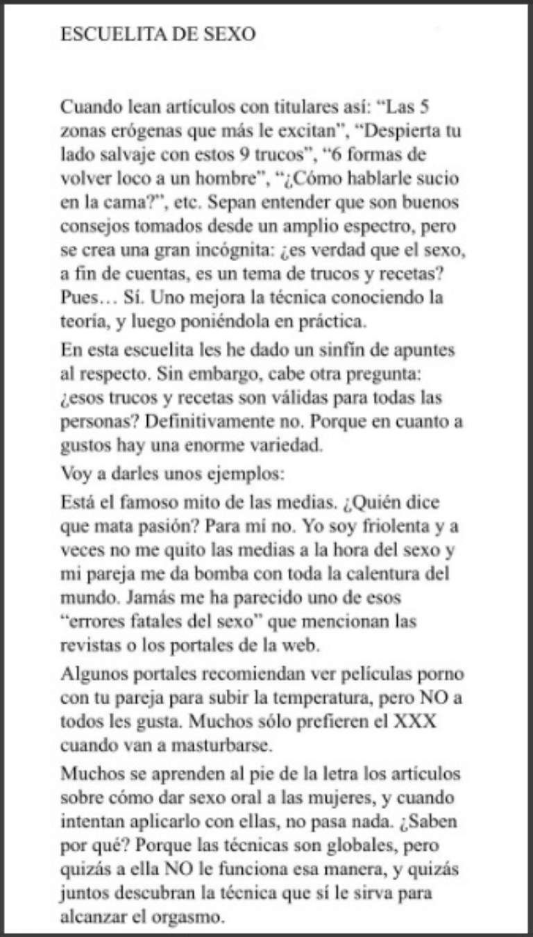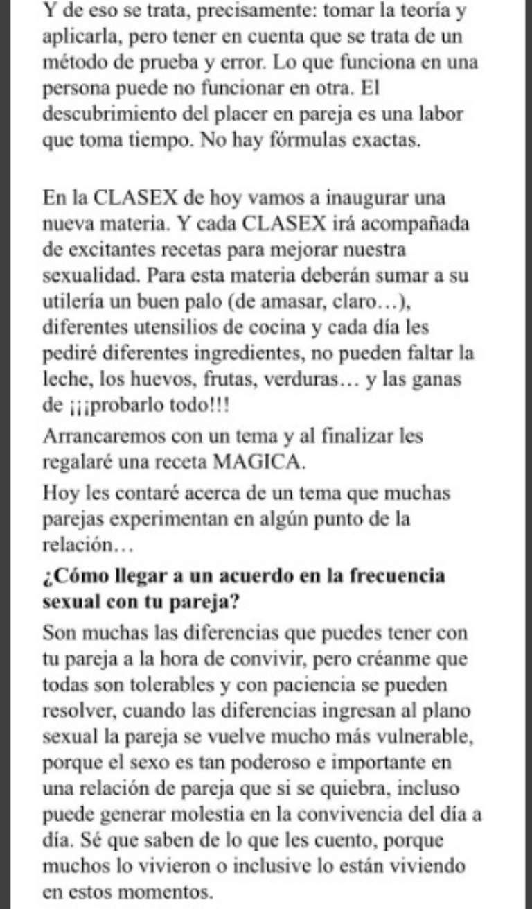 La rubia sanjuanina tiene una columna fija en el programa de radio que Coco Sily tiene en la Pop. Allí comparte consejos sobre sexo. Además de hacer el bloque en la radio, también comparte los consejitos en su cuenta de Twitter, donde tiene más de 55.000 seguidores.