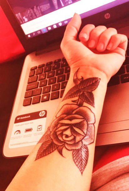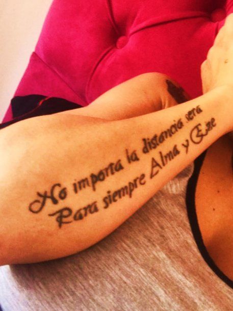En su brazo izquierdo se hizo una mandala para tapar la frase “no importa la distancia, será para siempre Alma y Eze”. En el otro brazo, se borró las iniciales de ambos y se hizo una rosa.