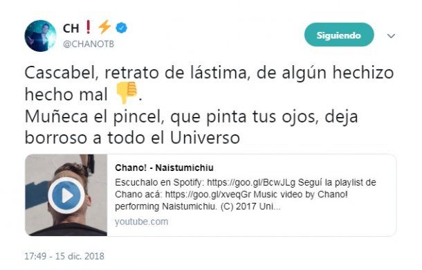 “Este lunes. El Otro”, publicó Chano junto a la tapa de su nuevo disco y los nombres de las diez canciones que contiene. Si bien la publicación obtuvo el aval de alguno de sus fanáticos, muchos otros le cuestionaron que lo haga al día siguiente de que Militta comunicara la denuncia.