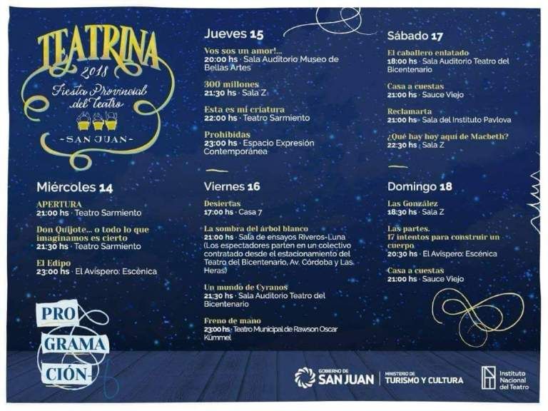 La Teatrina, el encuentro más importante para los 'teatreros' sanjuaninos, empezará a vivir su edición 2018 a partir de este miércoles, a las 21.00 hs., en el Teatro Sarmiento. “Don Quijote… o todo lo que imaginamos es cierto” será la primera obra en subir a escena después de la apertura formal.