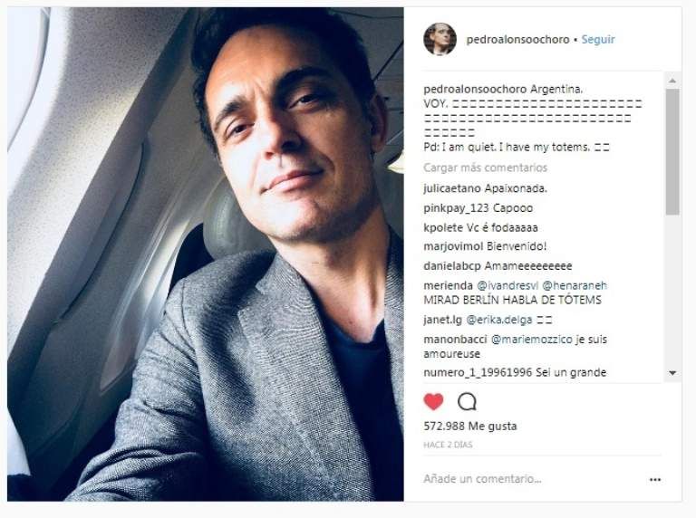 El viernes pasado, dejó un mensaje al pie de una foto en donde se lo ve arriba del avión que lo trajo: "Argentina voy" y luego de arribar, encerrado en el hotel, subió una foto mirando por la ventana y escribió: "El trabajo me dignifica. Se lo diré al primer paparazzo que me cruce en la calle. Entre abrazo y abrazo".