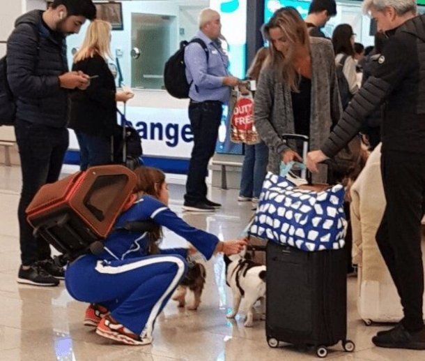 Un pasajero que estaba cerca sacó una foto de la modelo acariciando a su perra Liona (viaja siempre con ella en clase ejecutiva) y a menos de un metro se lo vio al diputado.