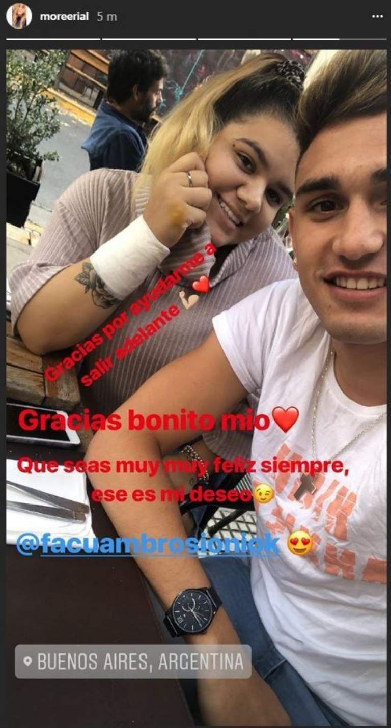 Por último, More almorzó en un conocido restaurante de Palermo y compartió la imagen en la red junto a un nuevo agradecimiento hacia su novio: “Gracias por ayudarme a salir adelante”.