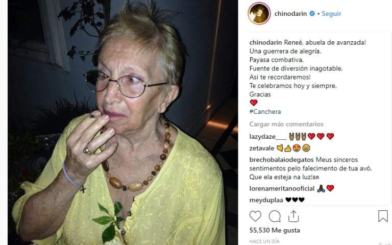 “¡Reneé, abuela de avanzada! Una guerrera de alegría. Payasa combativa. Fuente de diversión inagotable. ¡Así te recordaremos! Te celebramos hoy y siempre. Gracias ❤️”, aseguró el chino junto al posteo.