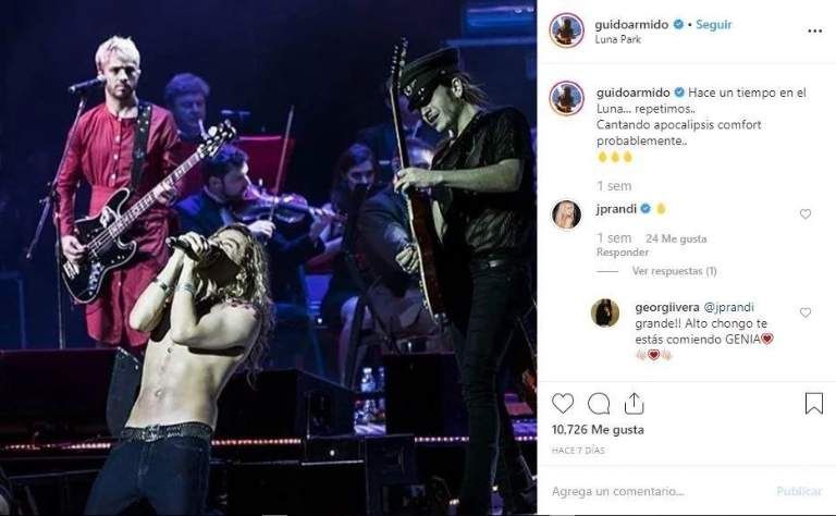 Ángel de Brito confirmó el romance entre Julieta Prandi y Guido Sardelli, guitarrista de la banda Airbag. Además, TN Show aseguró que la rubia estuvo en la primera fila del Teatro Vorterix el sábado pasado cuando la famosa banda hizo su presentación. Además, indicaron que después del show pasó a saludar a los camarines a los integrantes del grupo.