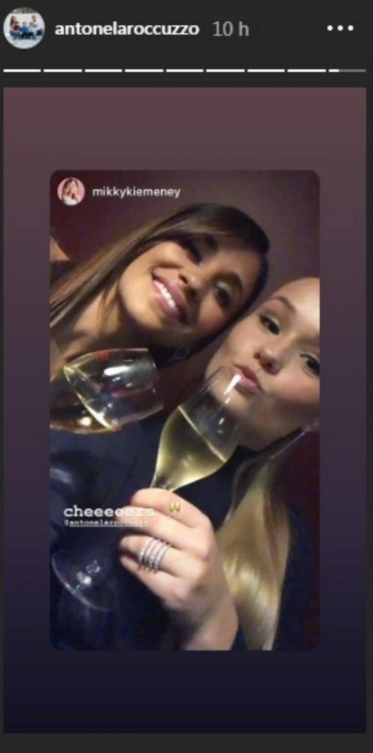 La hermosa rosarina, que vistió un escotado y precioso vestido, compartió una historia en Instagram en la que se la ve junto a una amiga brindando con champagne.