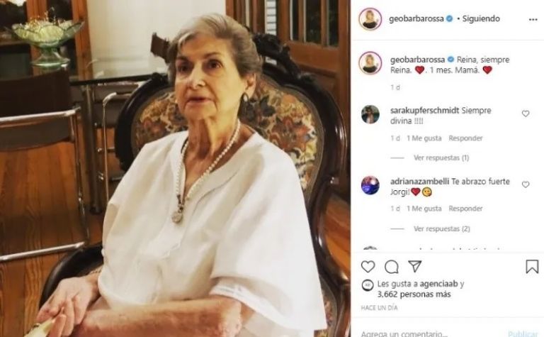Hace un mes falleció Susana, mamá de Georgina Barbarossa, a los 91 años tras permanecer un tiempo internada. Aún con las emociones a flor de piel, la actriz decide recordarla además de manifestar cuánto la extraña.
